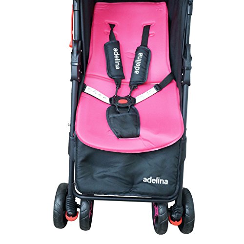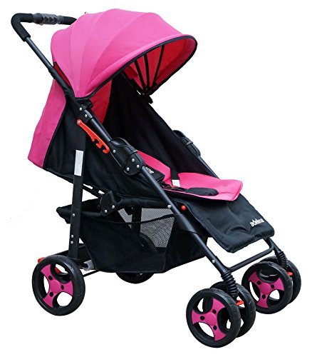 -. Feature : One hand folding / Removable foam seating for extra comfort. / Adjustable foot rest and large basket / Stylish canopy / Fully recline and padded harness seat belt