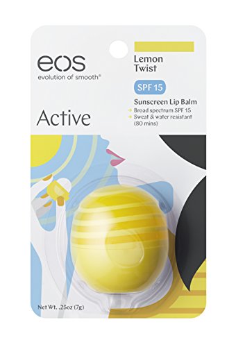 Evolution of Smooth (EOS) Fresh Grapefruit Lip Balm with sunscreen Actively protects and softens lips, Water and sweat resistant for up to 80 minutes, With broad spectrum SPF 30. eos lip balms are delightfully flavored and packed with antioxidant-rich vitamin E, soothing shea butter, and jojoba oil. These natural lip balms are hypoallergenic, dermatologist tested, and paraben and petrolatum free for soft, smooth, beautiful lips. EOS Lemon Twist Lip Balm, SPF 15, k, Evolution of Smooth Lemon Twist with SPF 15 Actively protects and softens lips, Water and Sweat Resistant for up to 80 MinutesFeature