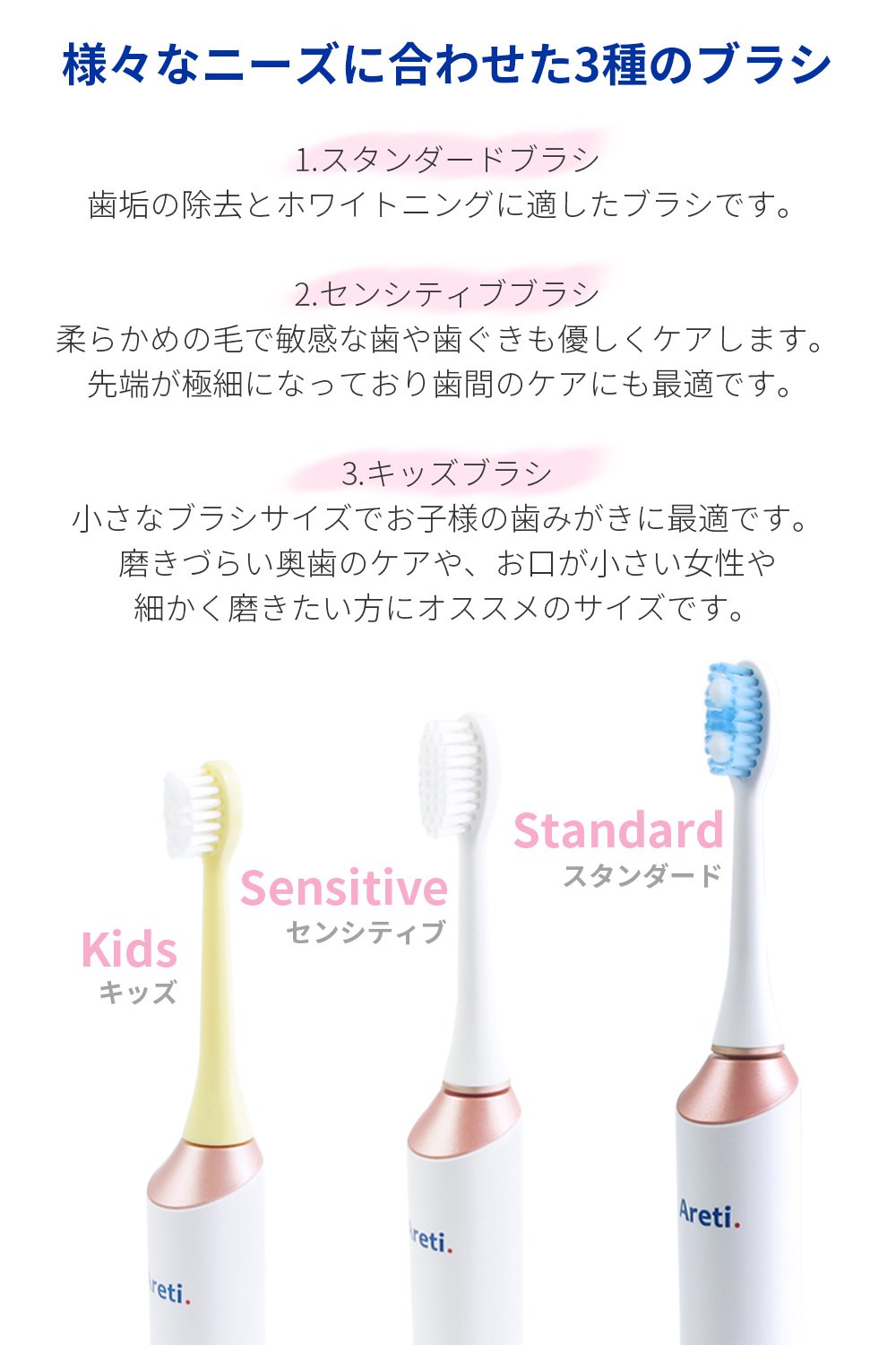 "Three types of brushes to suit various needs"