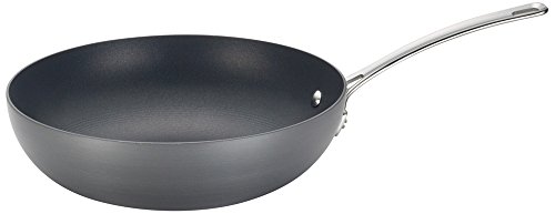 Making it easier to create light and full-flavored Asian-inspired dishes and other delicious meals, the Circulon Genesis Hard-Anodized Nonstick 12-Inch Stir Fry features a long-lasting nonstick cooking surface. It not only resists scratching, staining and chipping, but also delivers extraordinary food release for dependable cooking results without added fats and oils. It's ideal for stir-frying fresh vegetables and boneless, skinless chicken to create a tasty garden chicken stir fry and it works great for cooking down baby spinach or kale. This stir fry pan's heavy-duty, hard-anodized aluminum construction provides fast, even heating and outstanding performance day after day. The unique TOTAL Food Release System combines PFOA-free DuPont Autograph metal utensil safe nonstick with raised circles to reduce abrasion. The stir fry's stainless steel handle is solidly double-riveted for strength and the pan is oven safe to 500 Degree F. With this superior-quality nonstick that offers lighter cooking and faster cleanup, the stir fry works beautifully with other pieces from the Circulon Genesis line of cookware. Toss and stir noodles, meats and vegetables for nutritious stir-fry dishes with the Circulon Genesis Hard-Anodized Nonstick 12-Inch Stir Fry, the essential specialty cookware piece that offers superior nonstick technology to help create healthier meals.Feature