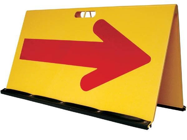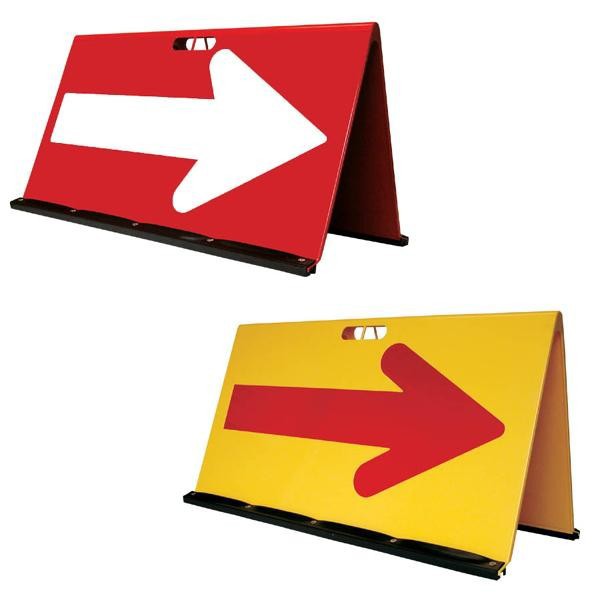 山型のシンプルな方向指示板です。大型で視認性に優れます。矢印のみ反射します。各種段積みが可能で、収納スペースを取りません。裏表で矢印の方向は同じです。持ち手孔付き。