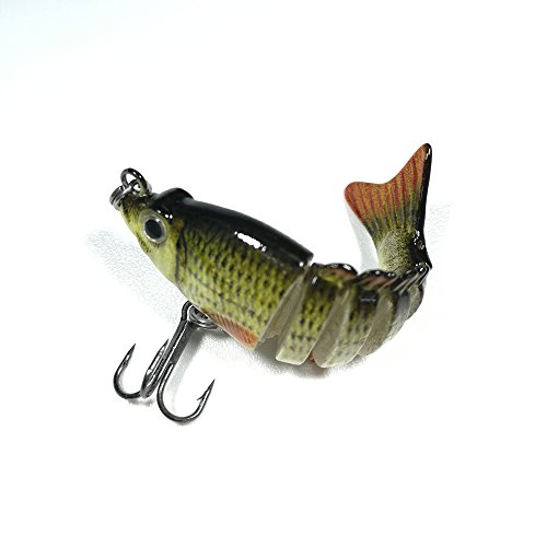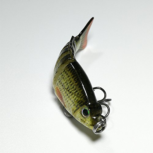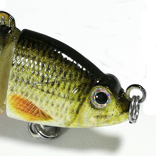 -. Feature : Rigged with a quality treble hooks,High durability and flexibility hinge / 3D lifelike eyes and verisimilar body detail as real fish. / The jointed fishing lure is a kind of special lure with like real fish appearance,Brilliantly replicates color and patterns of actual bait fish,and then it can tempt the attention of fishes. (Handmade!!!) / Smooth and rapid diving action. Life-like swimming actions in water to provoke predator to bite. / Widely targeting at predator fishes such as bass, yellow perch, walleye, pike, muskie, roach, trout, etc.