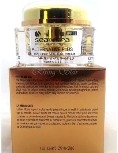 -. Binding : Health and Beauty -. Brand : Sea of Spa -. EAN : 7897556824524 -. Feature : You are buying a large (50 ml - 1.6 fl. oz.) pure Dead Sea minerals Active Light Moisture Cream. / Contains Dead Sea Minerals, hyaluronic acid, Olive Oil and Vitamins A, C and E. / For all skin types. / With SPF15 sunscreens to protect your skin from harmful UV rays. / Package contains 50 ml container (1.6 fl.oz.) - sealed and new in its box. -. Label : Sea of Spa -. Manufacturer : Sea of Spa -. MPN : 7897556824524 -. NumberOfItems : 1 -. PackageQuantity : 1 -. PartNumber : 7897556824524 -. ProductGroup : Beauty -. ProductTypeName : BEAUTY -. Publisher : Sea of Spa -. Studio : Sea of Spa -. Title : Sea of Spa Dead Sea Minerals Alternative Plus Active Light Moisture Cream