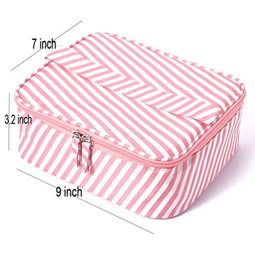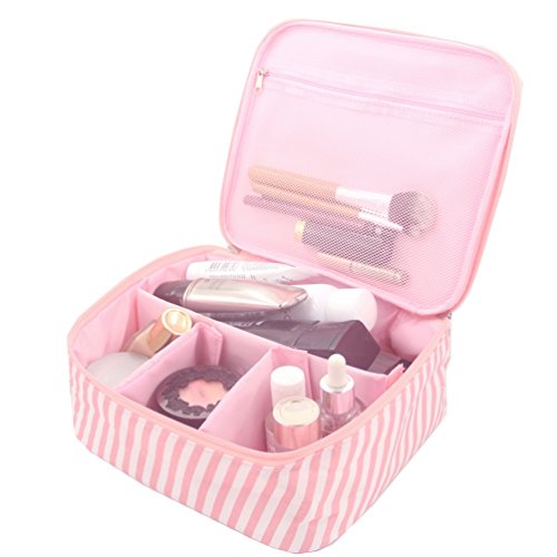 LARGER SIZE AND CONTAINER-Measures L9.4" by H 8"by Deep 3.4".Great for toting makeup, hair accessories, lipstick, eye shadow, or men's shaving kit and other small items during your travel.