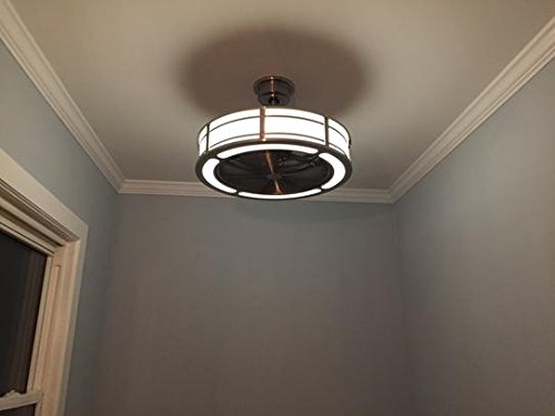 The Home Decorators Collection Drum Style 23 in. Brushed Nickel pendant fan will catch everyone's eyes because of its unique design and functionality. The housing is illuminated with two 23-Watt LED light strips that are fully dimmable and will last up to 50,000 hours. Also it comes with a remote control that can independently control the light brightness and speed of the fan, battery included. 3 speed reversible control for maximum year-round comfort and savings. Trendy drum cage fan design. Drum style housing light with frosted glass. 4.5 in. downrod included. 15.15 in. overall fan height with 4.5 in. downrod.Feature