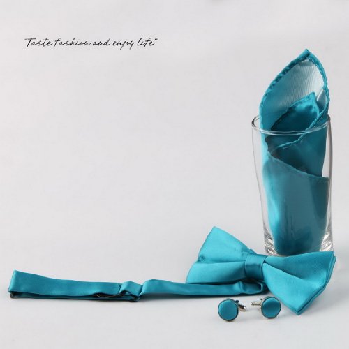 - Title : Green plain Silk Pre-tied Bowtie, Cufflinks, Hanky Gift Box Set Cyan Club bow ties, Country bowties BT2028 One Size Cyan
