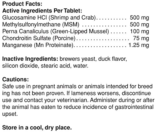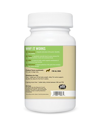 Hip + Joint for dogs includes natural and effective joint support ingredients at levels 2x higher than other brands. Formulated by veterinarians and manufactured in the USA, Hip + Joint provides the right level of support for dogs starting to slow down or showing signs of discomfort and stiffness associated with everyday activities like walks and play. Our Hip + Joint tablet offers an economical, easy and effective alternative for supporting joint health in your pet. Pet Natural's of Vermont products are NASC approved and come with a 100% satisfaction guarantee.Feature
