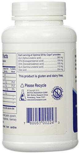 Optimal EFAs - Capsules Supplies a unique blend of the highest quality fish, flaxseed and borage oils, providing a balanced blend of omega-3, 6, and 9 essential fatty acids in optimal ratios. Proprietary Blend: . . . . . . .. . . . . . . . . . . . . . 2 gm Fish oil, Flax seed oil, Borage oil Each serving provides 1,000 mg of natural marine lipid concentrate, providing a natural source of the following Omega-3 Fatty Acids: ALA (Alpha-Linolenic acid) . . . . . . . . . . . . . . . . . . . 280 mg EPA (Eicosapentaenoic acid) . . . . . . . . . . . . . . . . . . . 159 mg DHA (Docosahexaenoic acid) . . . . . . . . . . . . . . . . . . . . 105 mg GLA (Gamma Linolenic acid) . . . . . . . . . . . . . . . . . . . . 112 mg Oleic acid. . . . . . . . . . . . . . . . . 204 mg RECOMMENDATION: Two (2) capsules taken two (2) times each day as a dietary supplement or as otherwise directed by a healthcare professional.Feature