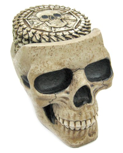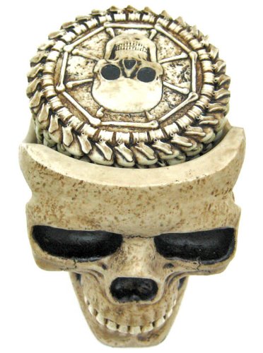 -. Feature : Set of six 3.75 inch dia. coasters. / Includes a 6 x 5 x 4 inch skull coaster holder. / All handpainted cold cast resin.