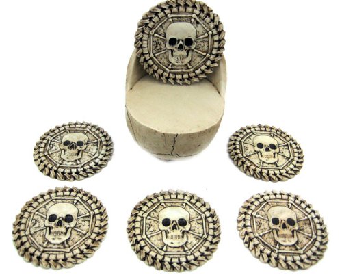 -. Title : Skull Coaster Set (6 Coasters) Collectible Skeleton Gothic Decoration