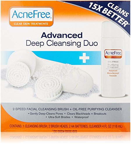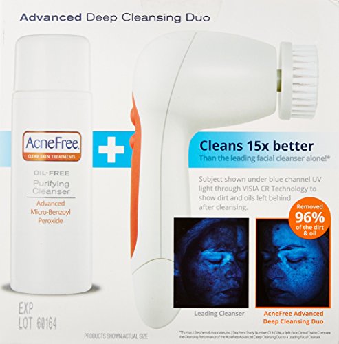 -. Feature : Cleans 15X Better Than The Leading Facial Cleanser Alone / The AcneFree Advanced Deep Cleansing Duo combines a two-speed, rotating brush and an oil-free acne cleanser to gently exfoliate and deep clean, leaving your skin feeling beautifully smooth and soft. / Together, the AcneFree Cleansing Duo provide a complete daily acne cleansing system. / A two-speed rotating brush head gently exfoliates and deep cleans skin by removing dirt, oil and makeup trapped in pores. / Effectively cleanses skin with a medicated antibacterial cleanser that eliminates acne bacteria.