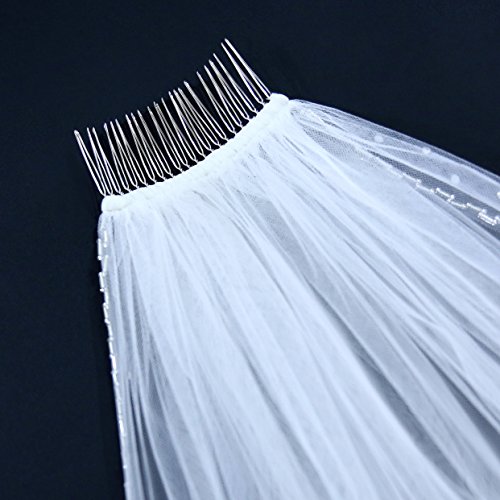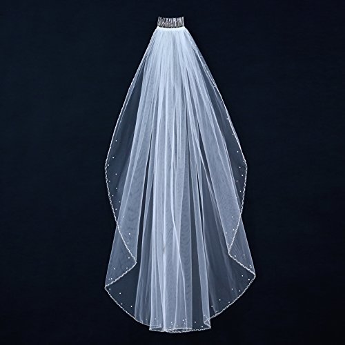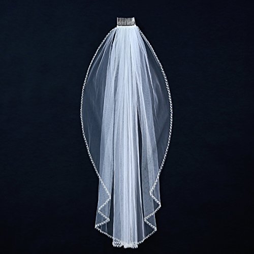 (Pinkpunk)/Accessories/Scarves/DIRECT FROM USA/Pinkpunk Women's 1 Tier Crystals Beaded Bridal Wedding Veil With Comb Ivory