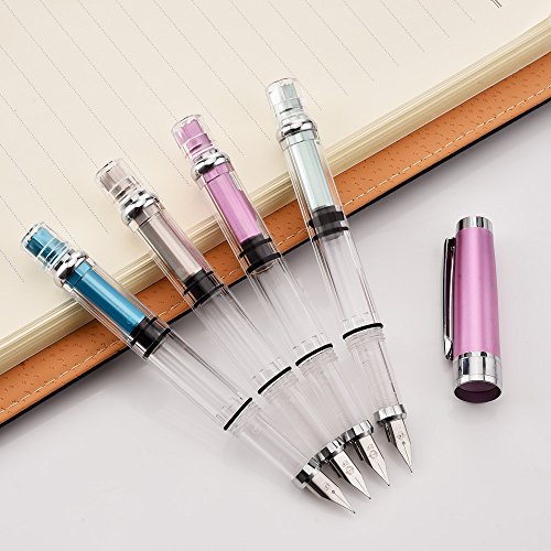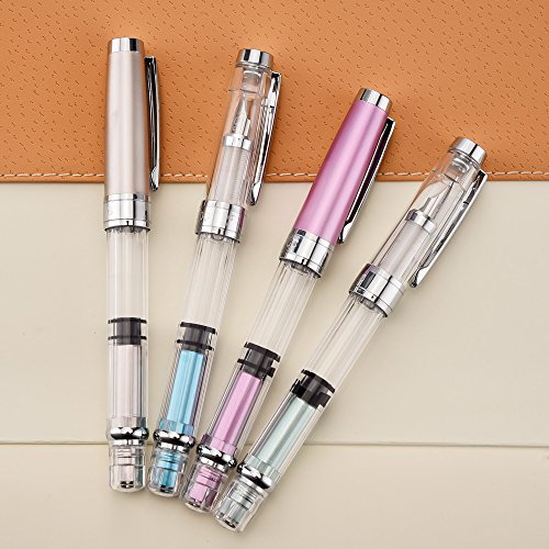 -. Title : Wing Sung 3008 Silver EF 0.35mm Thin Piston Fountain Pen Set of 4 Pieces, 4 Colors