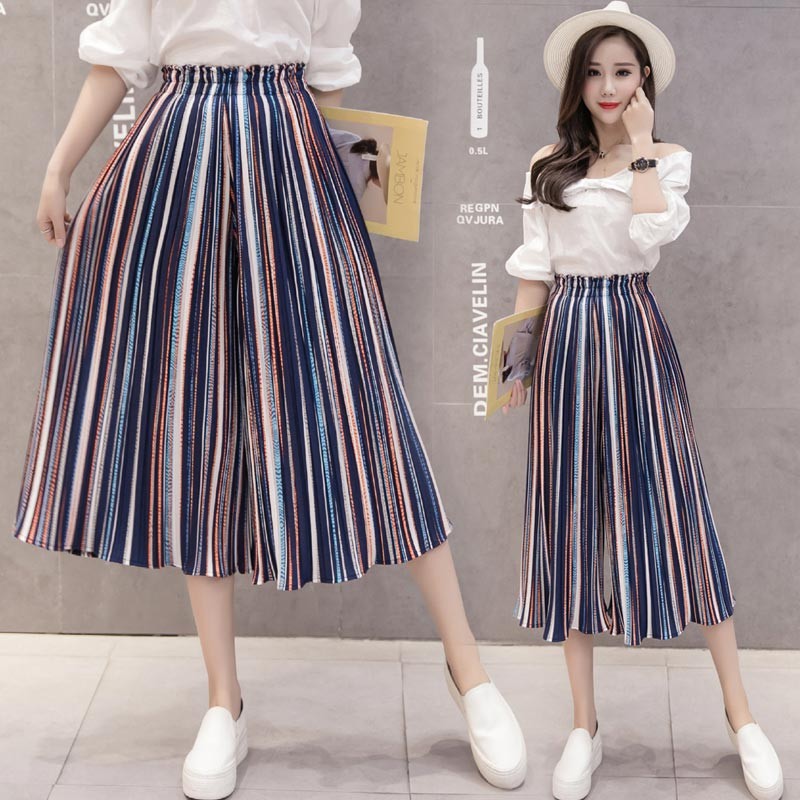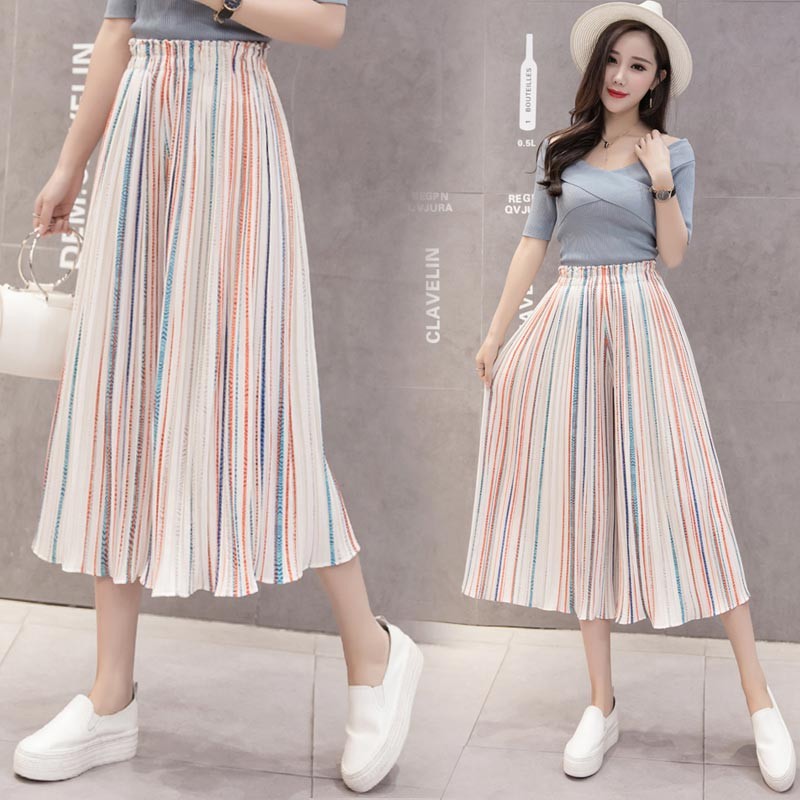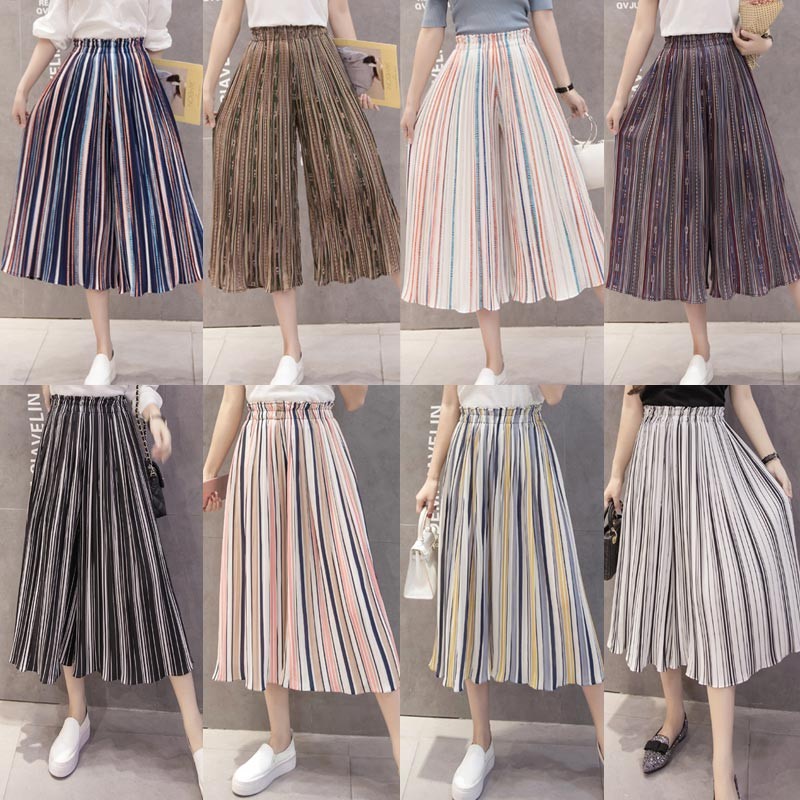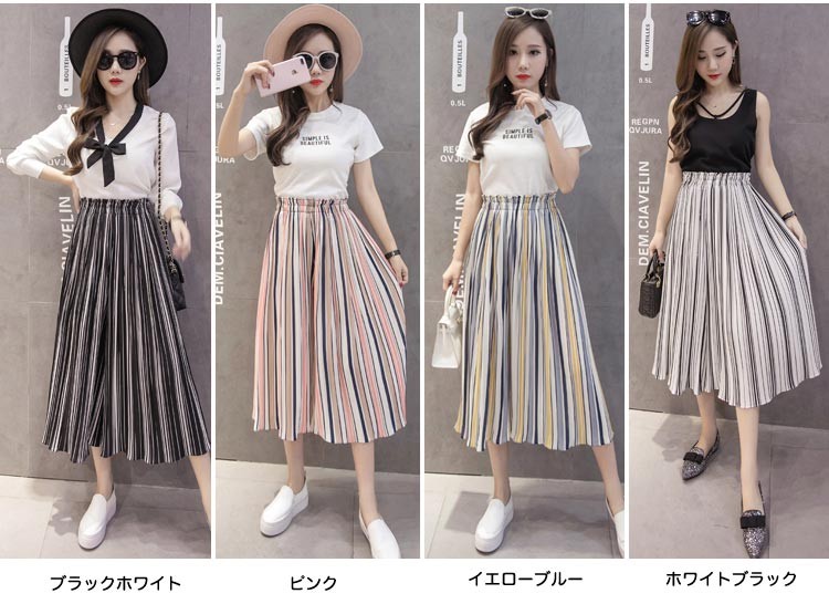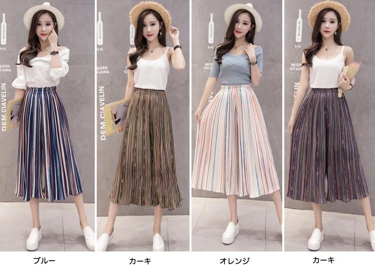 たっぷりギャザーの縦ストライプ柄キュロットスカート・ワイドパンツです♪
