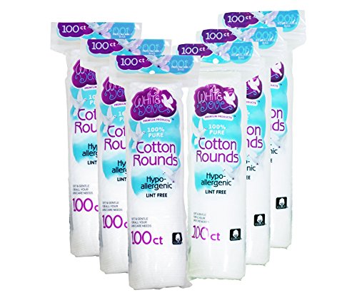 White Dove Cotton Round Pads, 100% Pure Cotton, 100Ct (6 Pack)