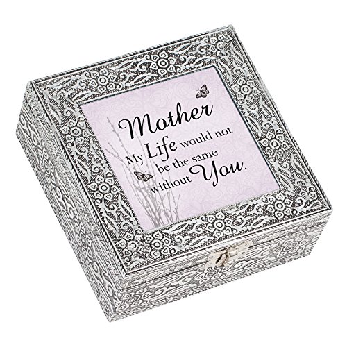 Mother Life Would Not Butterfly Silver Stamped Metal Jewelry Music Box Plays Tune Wind Beneath My Wings