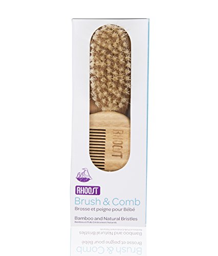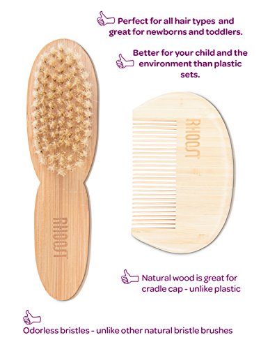 Rhoost Natural Bamboo Wooden Hair Brush and Comb Set. Suitable for Newborns, Infant & Toddlers. Soft Gentle Bristles for Cradle Cap