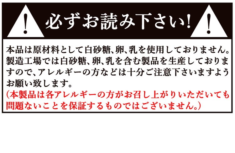 | ご注意 | 本品製造工場では乳、小麦粉、卵を含む製品を生産しております。 |