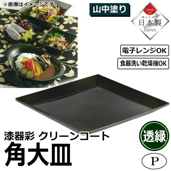 撥水性が高く汚れがつきにくいクリーンコート加工の角大皿です。 製造国:日本 素材・材質:飽和ポリエステル樹脂・ABS樹脂ウレタン塗装 商品サイズ:約幅260×奥行260×高さ20mm 仕様:電子レンジ使用可食器洗い乾燥機使用可 ※サプライヤー直送品 ご注文後2~3営業日後の出荷となります【商品名】パール金属 漆器彩 クリーンコート 角大皿 透緑 K-6145