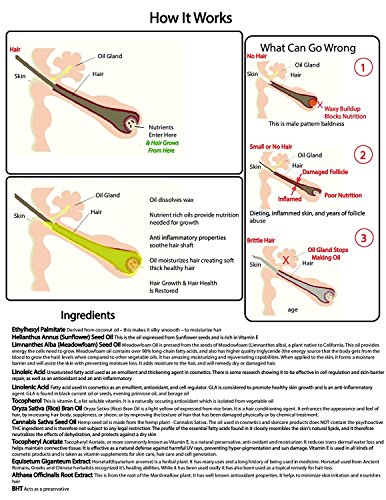 All ingredients are 100% natural oils & herbs. This rejuvenator contains hyemale (horsetail) extract, a well-known hair growth stimulator. The serum is anti- inflammatory, rich in vitamin E and antioxidants