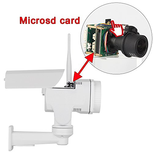 -. Feature : -16GB MICRO SD CARD BUILT-IN: This PTZ Camera is with a 16GB Micro SD card pre-installed. It supports max. 128G Micro SD card (Not support SD card). Buy one equals you own a security surveillance camera and a video recorder as well. To save storage space, you can set the motion detection to monitor who comes and goes, any unusual activity and your family's safety from wherever you are. If there is anything unusual, it will have email alarm to alert you. / -Metal Housing PTZ Camera: This Outdoor IP Camera is made of metal housing, you can use it indoor or outdoor as you like. Waterproof rating is IP66. It can pan tilt and zoom, Horizontal 0- 260° , Vertical -5-60°, 2.8-12mm F1.4 optical auto zoom lens.If you need PTZ IP Dome camera, please buy this one, Link: http://a.co/1VDFZld / -Easy to Setup & Use: Quick Setup via iPhone or Android Smartphone Using Free App. Please use it accoring to our user manual step by step, it will be very easy. Remote Viewing & Configuration through iPhone, Android phone, Tablet, PC (Compatible with Browsers IE, Chrome, Firefox). The network cable and power adapter is also included, full accessories. / -Audio Recording & Day Night Vision: Embedded with 4 big powerful IR LEDs which provide up to 150 feet of night vision, you can see everything clearly in the dark. / -High Definition: 2.0 MegaPixel 1080P image sensor produces sharper, cleaner images with a full 1920 x 1080p resolution at 25 frames per second (FPS). Having this level of detail brings you better security.