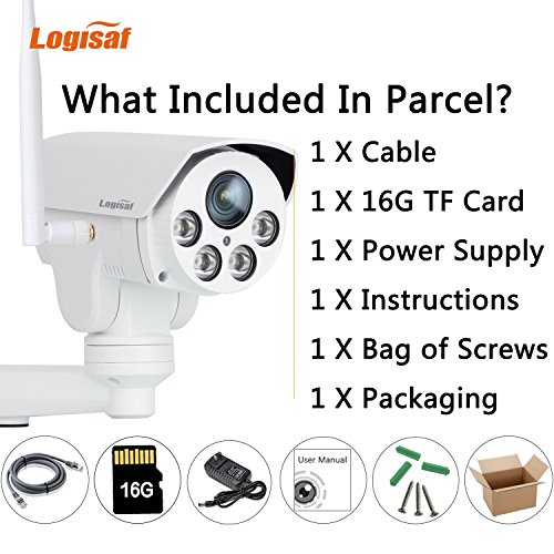 -. Title : Logisaf HD 1080P PTZ Outdoor Security IP Camera Audio Wireless Wifi 4X Zoom 2.8-12mm Lens IR Cut Built-in 16G Micro SD Card Remote Viewing Motion Detection Pan Tilt Zoom Video CCTV Camera