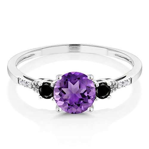 -. Title : 10K White Gold Diamond Accent Three-stone Engagement Ring set with Purple Amethyst Black Diamond (0.88 cttw, Available in size 5, 6, 7, 8, 9)