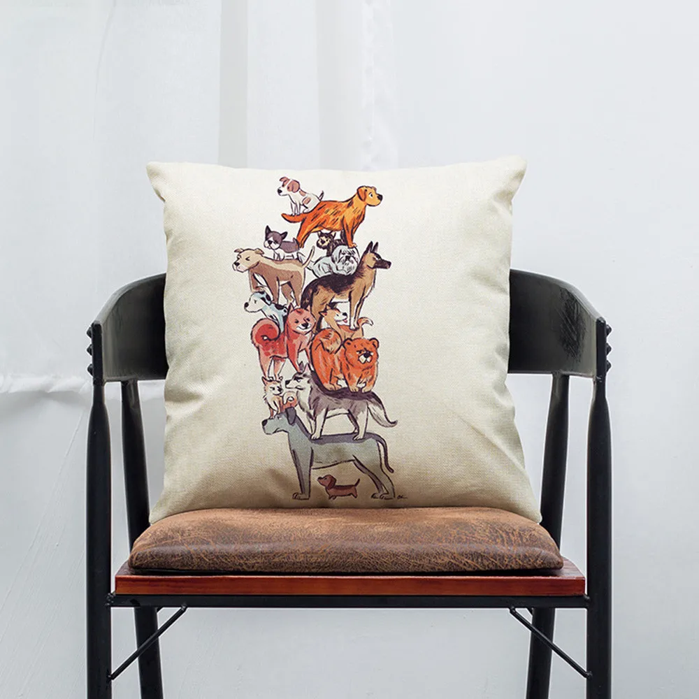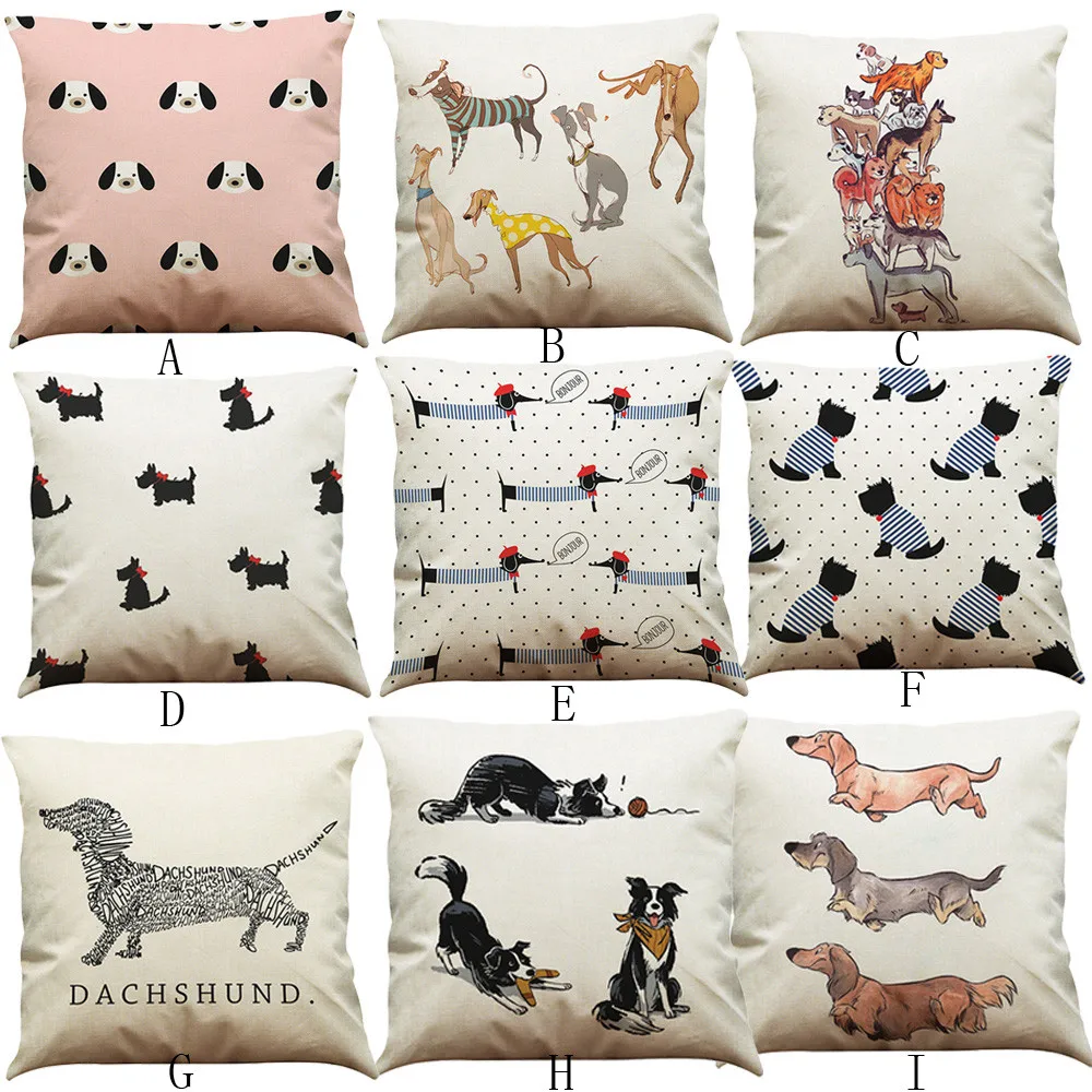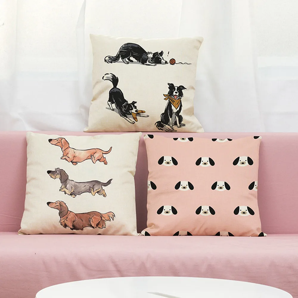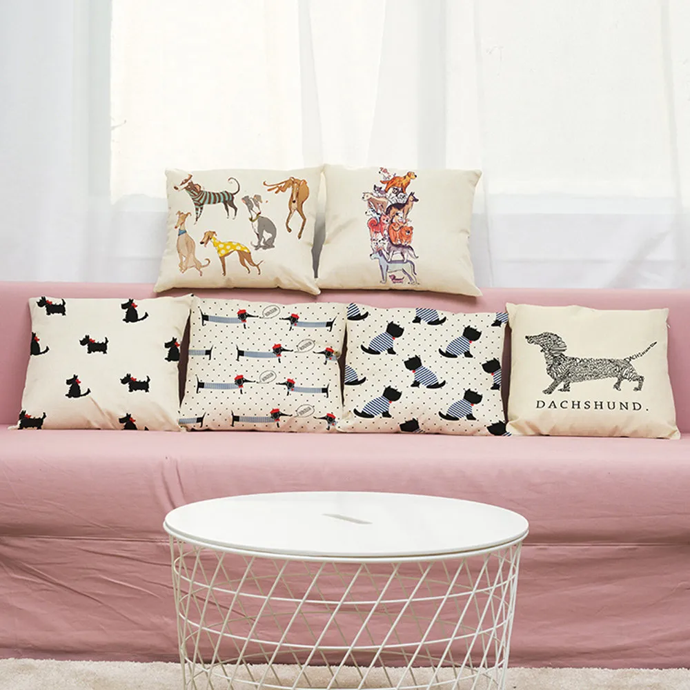 Vintage Cute Dog Cotton Sofa Waist Throw Pillow Cushion Cover Case Home Car Decor Cojines Fundas coussins decoratif almofada