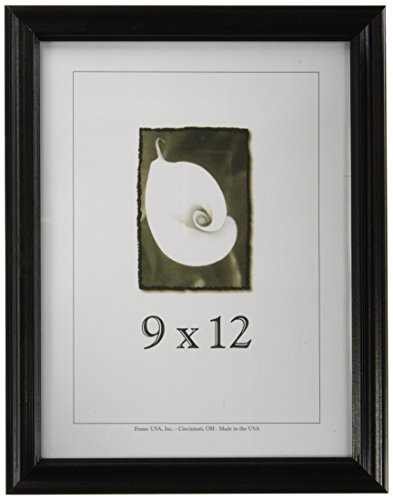 -. Binding : Kitchen -. Feature : Available in 3 great colors / Frame includes glass, backing, mat and hanger / Frame holds a 9x12 P.R.Int/poster/photo / Molding is 1" wide and 3/4" deep / 100% Made in the USA -. Label : Frame USA -. Manufacturer : Frame USA -. PackageQuantity : 1 -. ProductGroup : Home -. ProductTypeName : HOME -. Publisher : Frame USA -. Size : 9x12 -. Studio : Frame USA -. Title : 9 x 12 Wood Picture Frame w/Real Glass - Classic Frame in Black, Walnut or Cherry