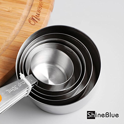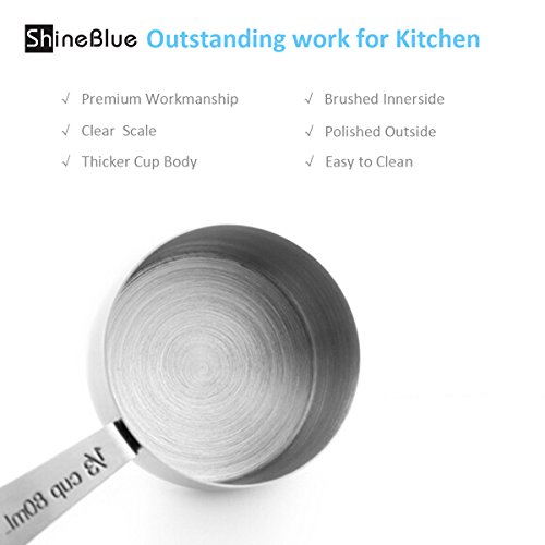 ShineBlue Measuring Cups 5pcs Stainless Steel Stackable Dry and Liquid Ingredients with Soft Handles Kitchen Cooking Baking