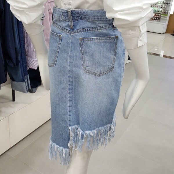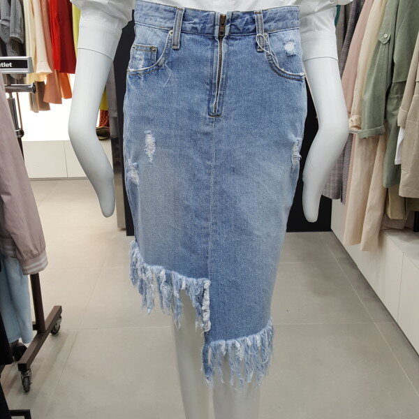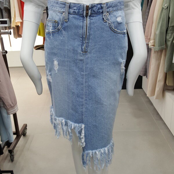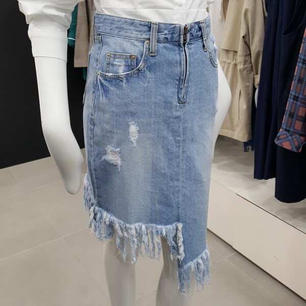 밑단 구제 디테일이 세련된 데님 스커트입니다 자연스러운H라인과 언발런스한 밑단처리된 데님소재에 개성 있고 멋스러운데이지 디테일 포인트가 언발한 길이감으로 다리가 길고 슬림하게 보이게 연출합니다55사이즈 허리둘레67엉덩이둘레88