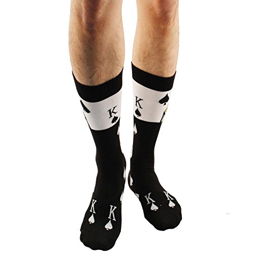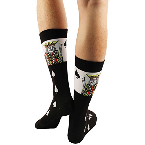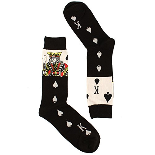 -. Binding : Apparel -. Brand : SK Hat shop -. Color : Black -. Department : mens -. EAN : 0754890267745 -. Feature : Fabrication: 80% Cotton 15% Polyester 5% Spandex (Highest cotton content for comfort and stretch) / Size: Men's One size: 10-13 (Shoe size 6-12) / Flat measurement: 17" x 3-3/4" - Average male mid calf / Made in Korea with vibrant colors and reinforcement comfortable top, not too thin, not too thick. / Occasion: Everyday stable socks to perfect your outfit. Stylish and whimsical, the talk of the office and your workplace. Bachelor party anyone? A night out with guys or dress to impress. No more boring socks, great with a suit or casual with a pair of jeans. Game day, football stadium games, college students, teachers, sports lovers, church, formal. Relax in your man cave and reclaim your man hood. Perfect as gifts, everyone will love them. Easy care, machine wash similar colors. -. Label : SK Hat Shop -. Manufacturer : SK Hat Shop -. NumberOfItems : 3 -. PackageQuantity : 1 -. ProductGroup : Apparel -. ProductTypeName : SOCKSHOSIERY -. Publisher : SK Hat Shop -. Size : One size -. Studio : SK Hat Shop -. Title : Men's Everday Novelty King of Spades Poker Trouser Dressy Casual Comfy Socks -. UPC : 754890267745