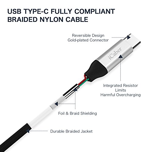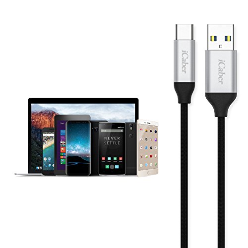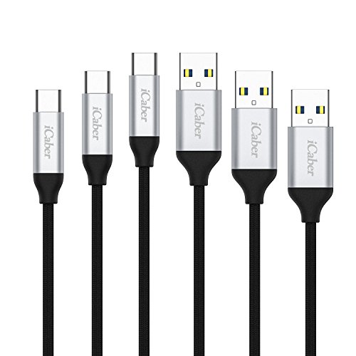 USB C Cable, iCaber Type-C to USB 3.0 ( 3-Pack 6.6ft/2m) Fast Charging Sync Braided Nylon Cable for Samsung Galaxy S8/S8 Plus,MacBook,Google Pixel,LG G5/G6, HTC 10 and More (Black)