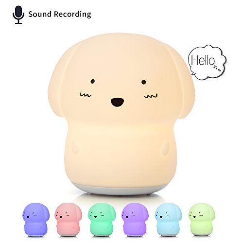 GoLine Voice Recording Puppy LED Baby Kids Night Light Valentine's Day Gift for Her, Multicolor Silicone Soft dog Nursery Lamp for Children Girls, Tap Control, White & 7-Color Breathing Light. (NL025)