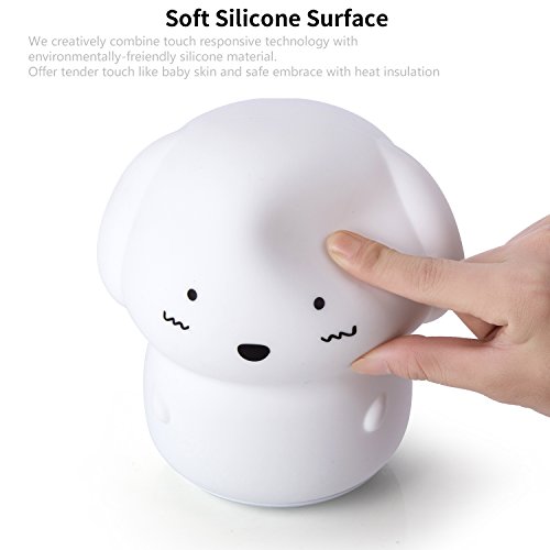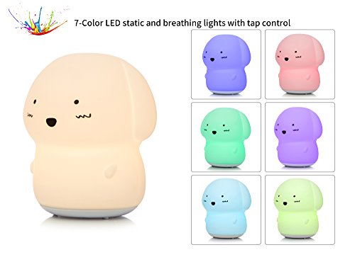 - [3-light Mode] Super cute doggy night light with white light mode, 7-color breathing mode and standby mode, press the power button to turn it on and into white light mode, switch the light into breathing light mode by touch, and you can stay at any color you like by tap.