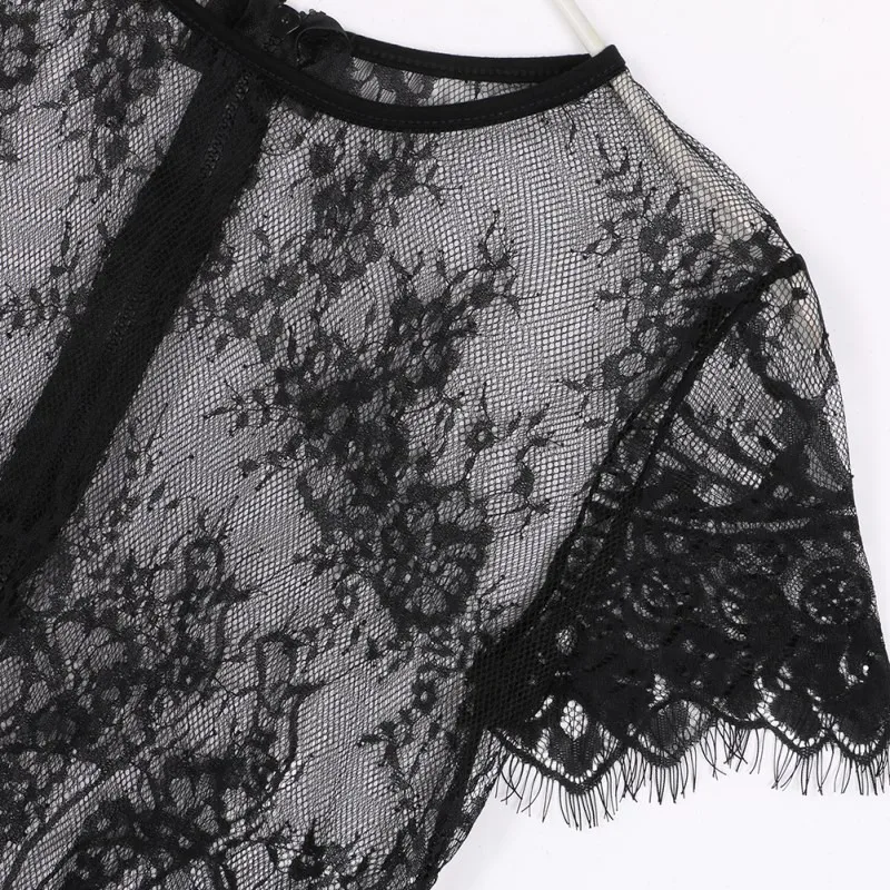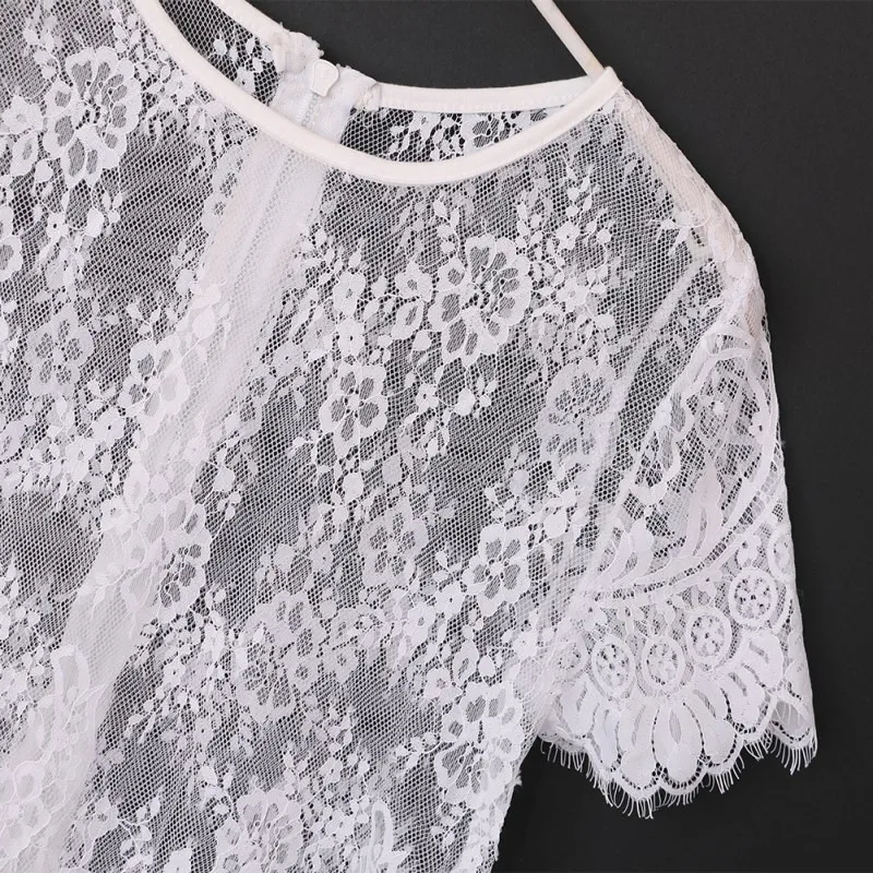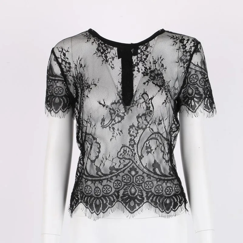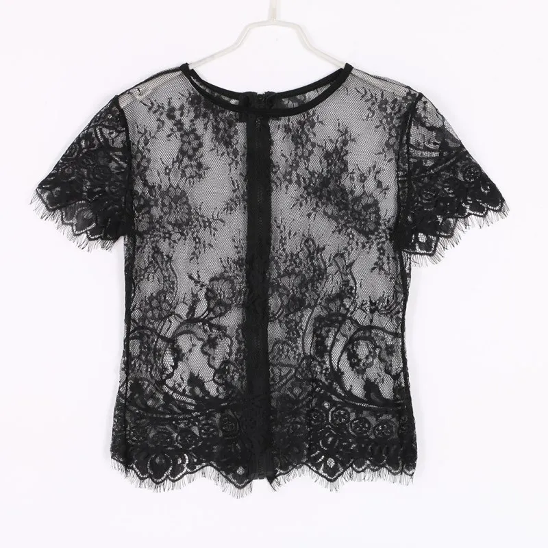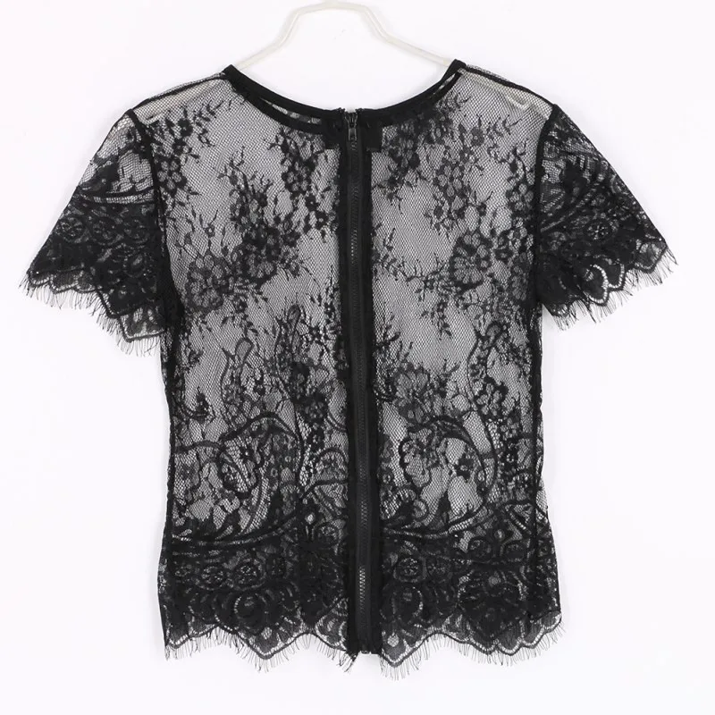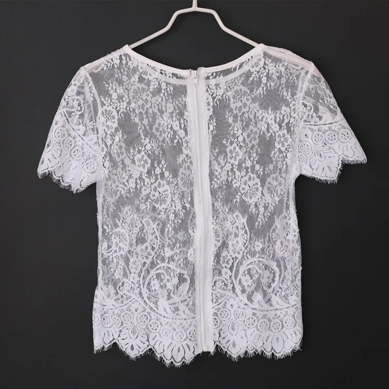 Model Number:Short Sleeve O Neck Sexy Vintage Lace Blouse Hollow Out Zipper Back Sh