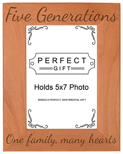 Five Generations One Family Many Hearts Natural Wood Engraved 5x7 Portrait Picture Frame Wood