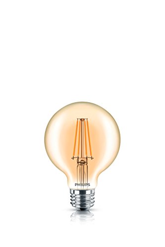 Philips A19 Vintage Filament LED light bulbs are made to be seen, with a classic, dimpled shape in amber glass and glowing filament that shines with 350 Lumen’s (60-Watt equivalent) warm light at a quarter of the energy use. Warm Glow dimming offers flicker-free, silent dimming that works with more dimmer switches than any other LED on the market. The more you dim, the warmer the light--from 2700 to 2200 Kelvin just like traditional incandescent light bulbs. Best-in-class Philips LEDs turn on instantly with energy-efficient flicker-free, natural light at 1/4 of the energy of incandescents, 1/2 the energy of halogens and with 10X and 4X the lifespan respectively. Philips LEDs are mercury-free so they don't contribute to harmful hazardous waste. With a medium (E26) standard base, these decorative bulbs can be used in any standard lighting fixture both indoors and outdoors. Use these decorative bulbs exposed fixtures, hanging and pendant lamps, and string light fixtures where steady ambient mood lighting is desired. Not for use with Philips Hue products. This pack of 4, A19 Vintage Filament Philips LEDs comes with a 3-year warranty. Each bulb is expected to deliver a lifetime of up to 15,000 hours and over 10 years (based on three hours per day), saving you the cost and hassle of frequent bulb replacement.Feature