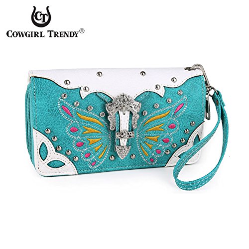 Western Wallet - Colorful Butterfly Design Wallet accented with a Silver Buckle, Rhinestones, and Studs