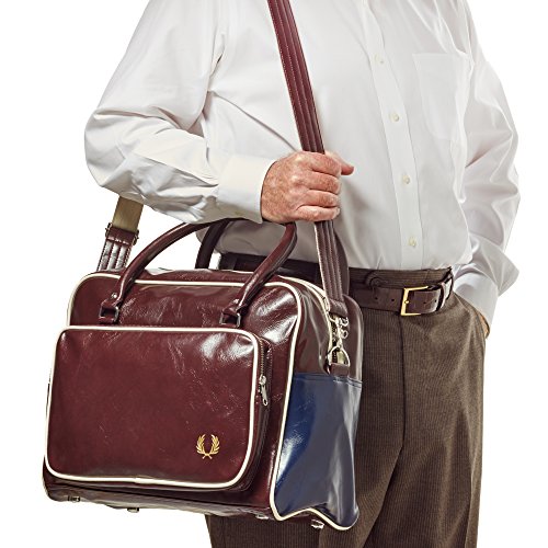 Product Description This classic PVC barrel bag crafted with cotton canvas trims and an additional zip-up compartment at one end. Featuring an outer slip pocket and inner zipped pocket; this spacious barrel bag is ideal for a training session or overnight stay. Complemented by two grip handles, an adjustable shoulder strap and Fred Perry branding on one end, as well as our signature laurel Wreath embossed in gold coloring. 0