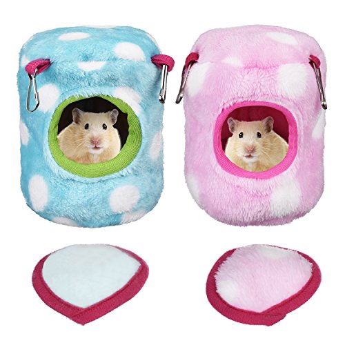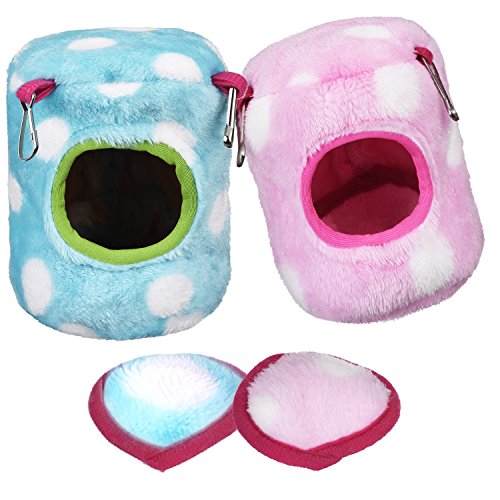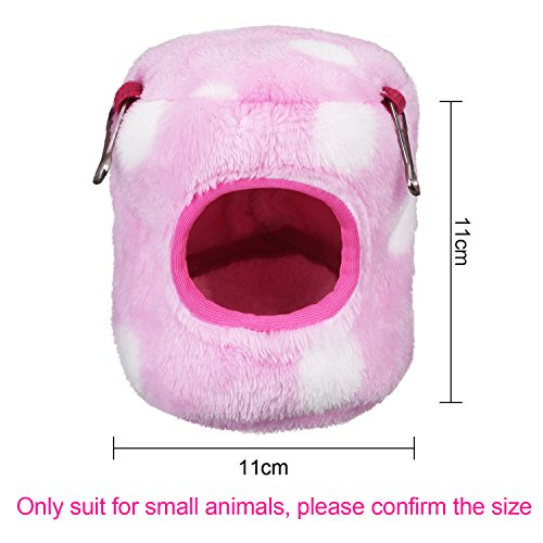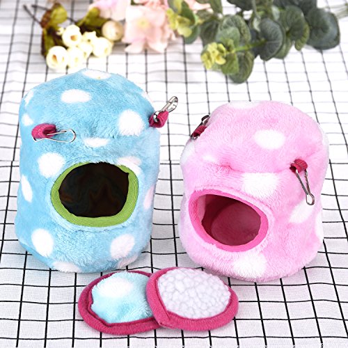 2 Pieces hamster hammock 11 cm pet bed winter warm cotton hammock toy pet plush hamster house small animal cage Cosy and clean place for little pet staying: The small hammock is made of flannel, touches real soft and comfortable; Fluffy to keep warm in winter, make cold away and have a cosy winter. Come with a pad for convenient to replace and wash; Has a manure leak hole in the bottom, clean and sanitary of internal. Tiny cute but suitable size: Each hamster cage bedding is approx. 11 x 11 x 11 cm, looks cute but enough place for your little pet sleep and play inside. Clips design: Comes with 3 clips on the top, symmetrical installed in 3 direction, easy to hanging balanced in the cage. Specification: Material: flannel Size: approx. 11 x 11 x 11 cm Quantity: 2 pieces Package contents: 2 x Hamster hammock Warm note: Color of the pad and door comes random, each hammock may be slightly different, please know that before purchase. The size is only suitable for small animals. Please confirm the size of cage and your pet before purchase. 0