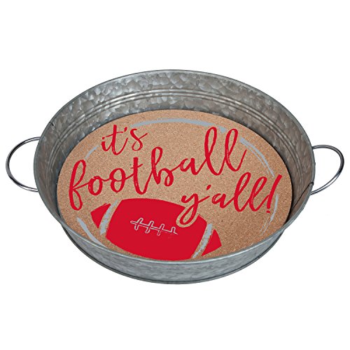 - Galvanized metal with cork insert embellished with 'it's Football y'all'