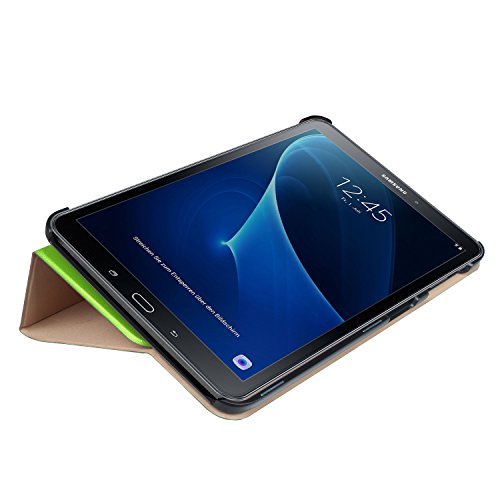Feature : Perfectly fit for Samsung Tab A (2016) 10.1 inch SM-T580. / Superior Quality Case: Premium Synthetic Leather with microfiber cloth combine with rigid polycarbonate back shell brings you a solid case, will perfectly protect your Samsung Tab A 10.1-Inch Tablet from knocks, dust, damage, scratches. / Precise Openings: Best tailored openings at the exact locations for quick and easy access to all ports and controls (Cameras, Ports and Buttons). / Scientific Design: Slim leather folio cover case with a stable stand for comfortable viewing; precise cut-outs with full access to all controls and features; Easy to open and close with a Folding magnetic; / Ultra slim and lightweight hard back design adds minimal bulk while protecting your precious device.