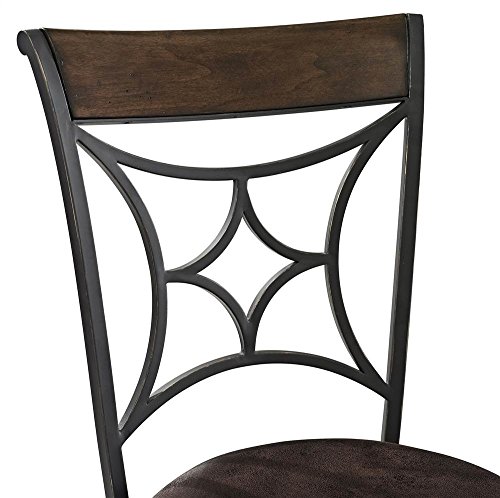 -. Feature : Designer stool with metal accents / Padded seat with upholstery / Distinctive mixed-material accents / Ideal use for kitchen or dining / Made from PU, foam, metal and poplar wood