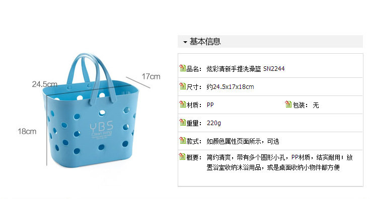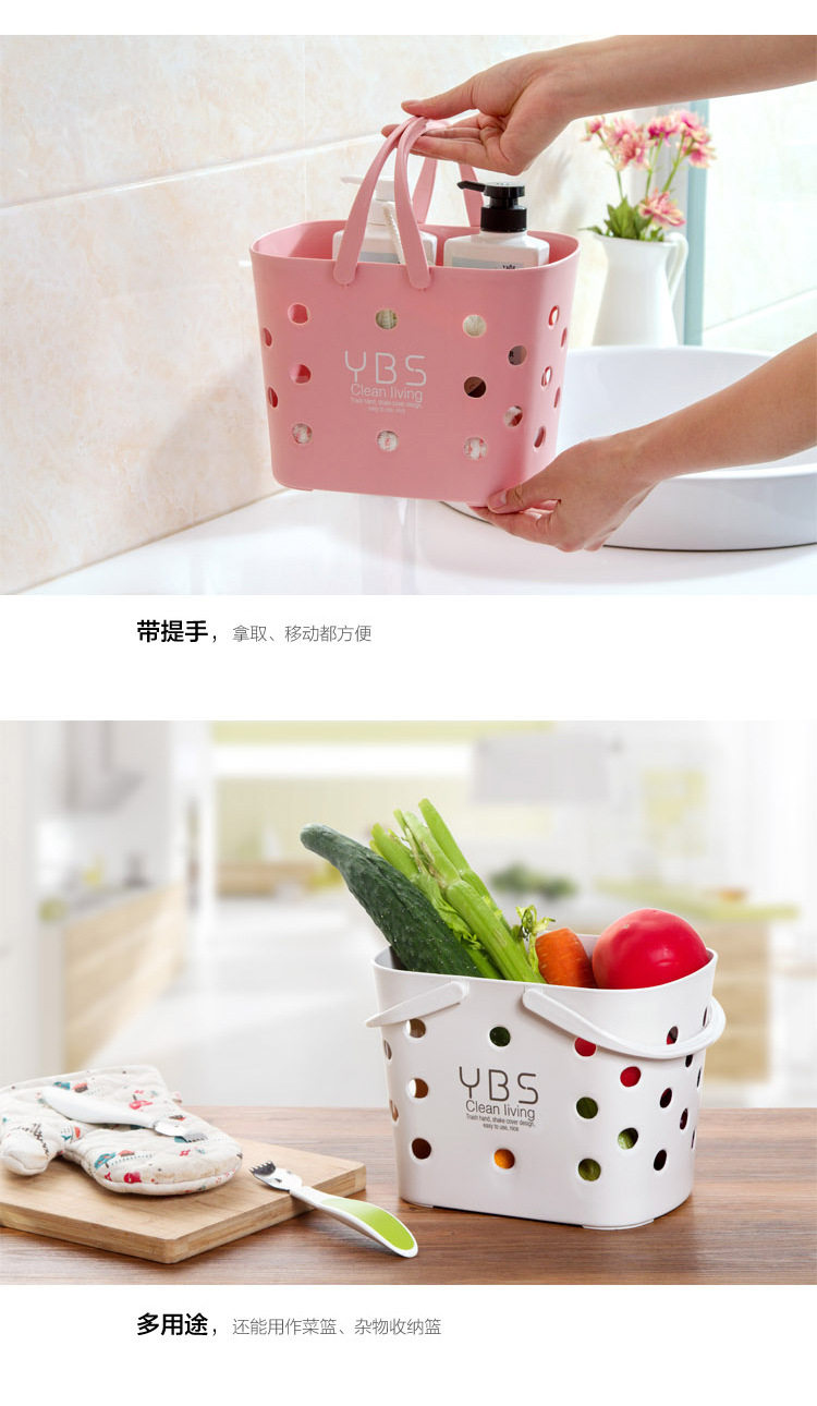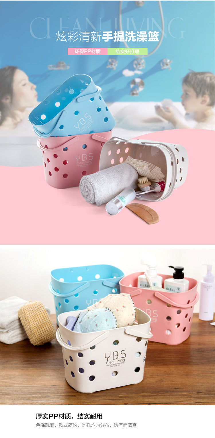 洗澡篮子收纳筐 镂空塑料洗漱收纳篮小浴筐 浴室手提篮沐浴洗浴篮