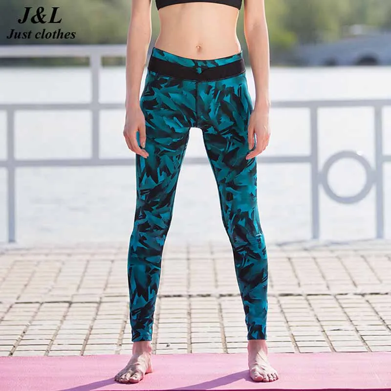 style: : Blue Feather Print Leggings Women