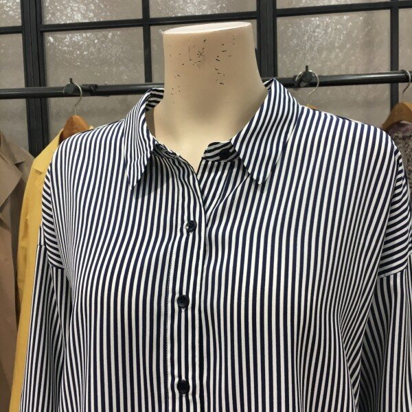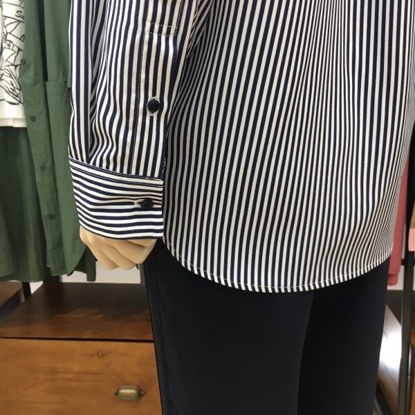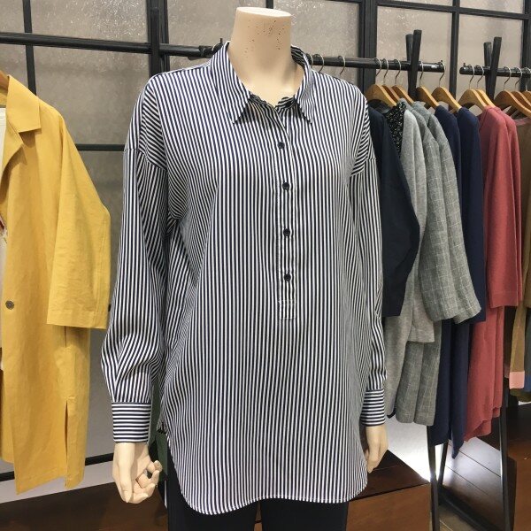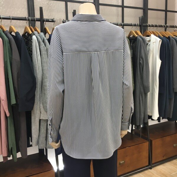 네이비 컬러감이 예쁜 데일리 스트라이프 셔츠에요. 아주 부드러운 느낌의 코튼 100%셔츠로 베이직한 핏이라 데일리로 입기 좋아요.단추 디테일로 은은한 포인트를 넣어주었고,깔끔한 스트라이프 패턴으로 단정하면서 모던한 느낌을 연출해준답니다.단독은 물론 추운 날에는 니트와 함께 레이어드해서 활용하기 좋은 셔츠에요. 봄,초여름과 가을에도 딱 입기 좋은 컬러감의 데일리 스트라이프 셔츠로 추천해드려요! 총장길이는 55사이즈 기준으로 70cm입니다.