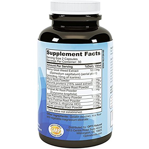 -. Title : Natural Horny Goat Weed Supplement for Men & Women - 1000 mg Pure Epimedium Capsules with L-Arginine and Saw Palmetto Extract Boost Energy Increase Stamina Support Improve Recovery - Opti Natural