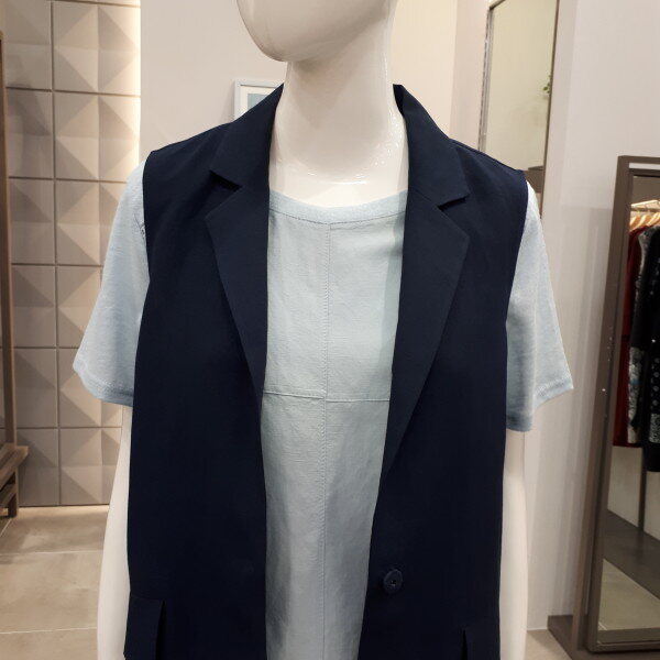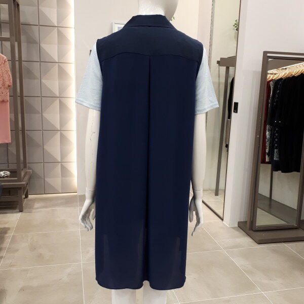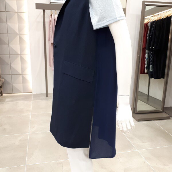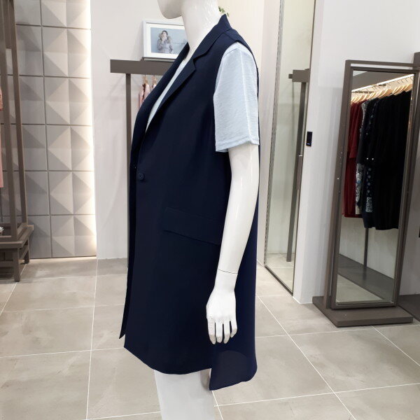 앞엔 린넨 뒤엔 쉬폰소재로 편하고 멋스럽게 입으시기 좋은 베스트예요55사이즈 뒤총장 92cm 입니다