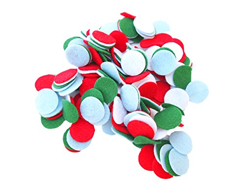 200 Piece Red, Green, Light Blue, White Color Assortment of 1 inch Felt Circles